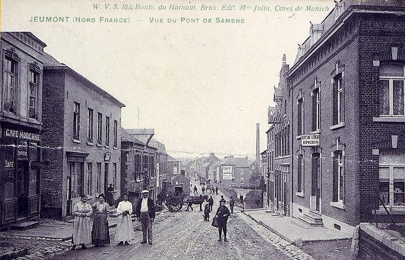 On remarque sur la gauche le café "le Moderne" à droite l’épicerie "Deresmes - Lebeaux".
